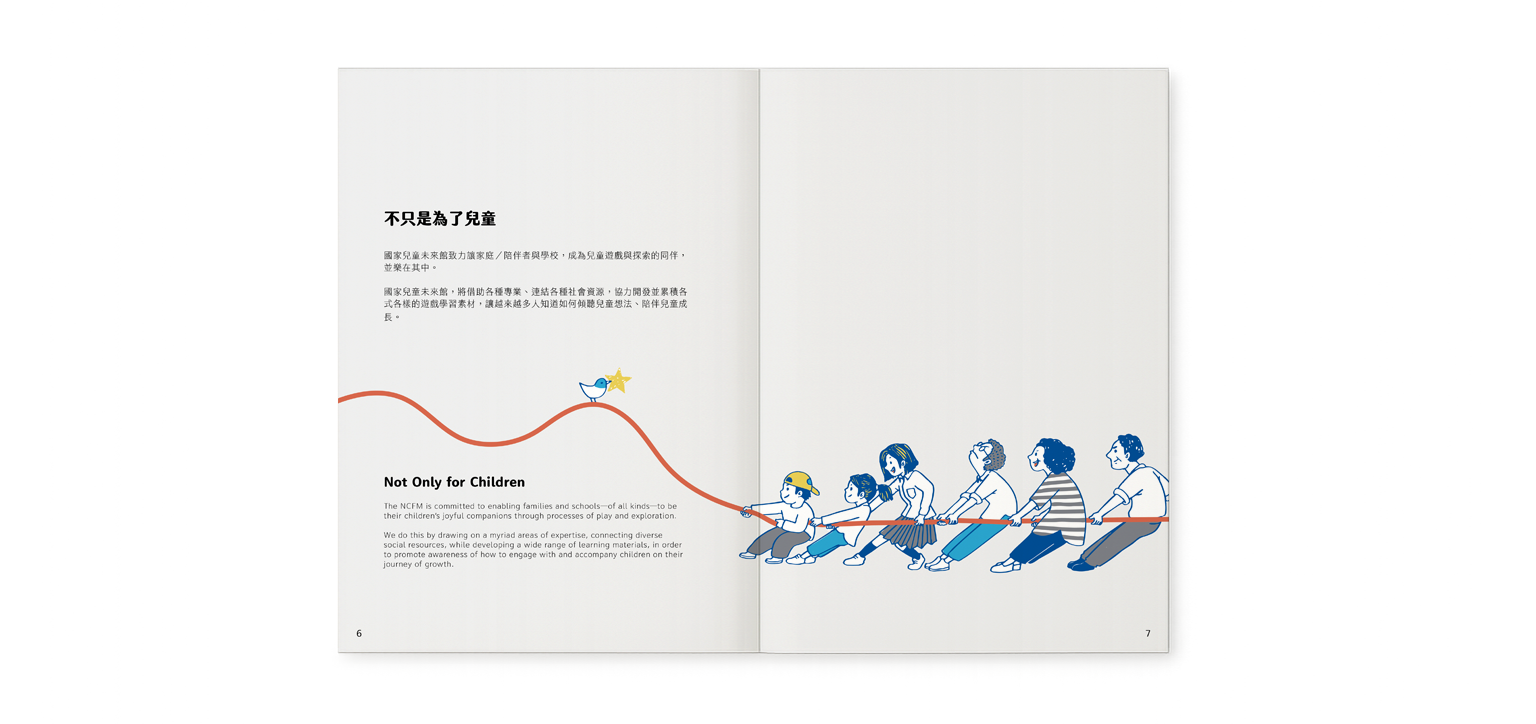 以大小朋友在想像未來的有機空間裡遊戲、探索,透過遊戲中去誘發兒童的豐富情感、想像力與求知慾,創造認同與歸屬感。面對世界持續的變化,提供兒童探索未來的挑戰內容,擴大其生活場面的觀察、思考、創造的能力,幫助在地適應與改變。同時引導兒童意識到人與文化多樣性,展現同理心,推動一個相互尊重、理解差異的社會。