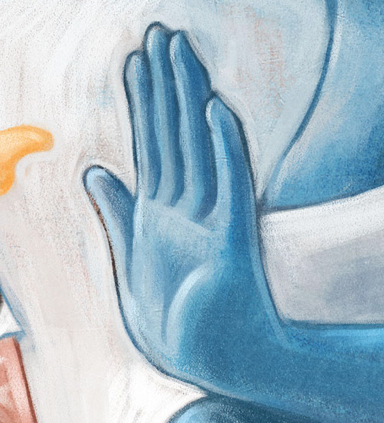 琉璃清涼無畏。 藥師如來施無畏印、持藥壺。