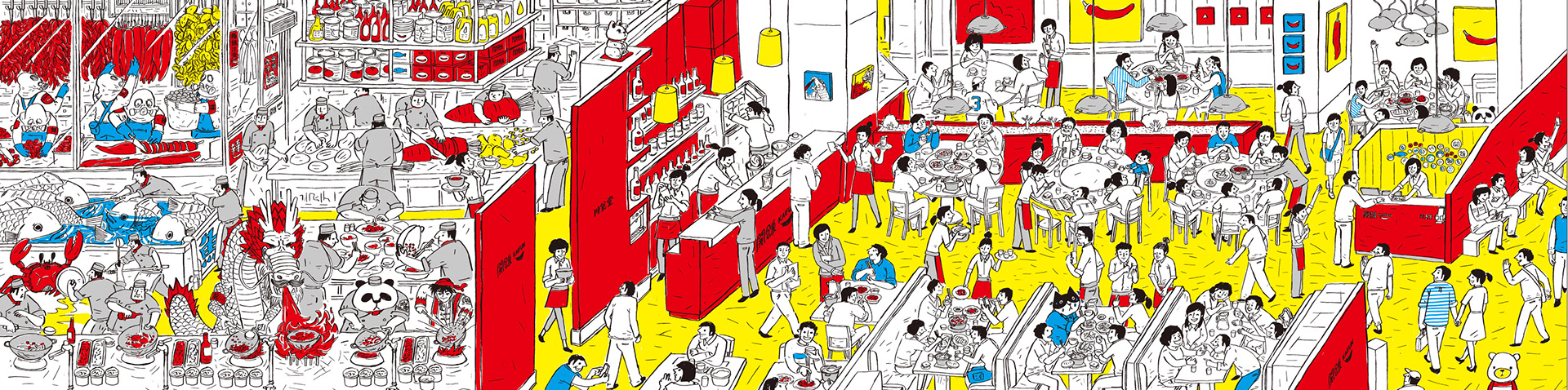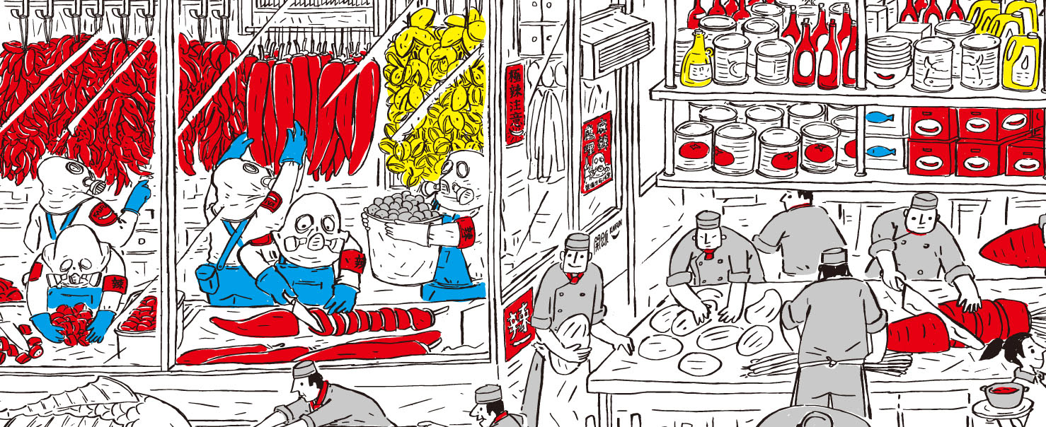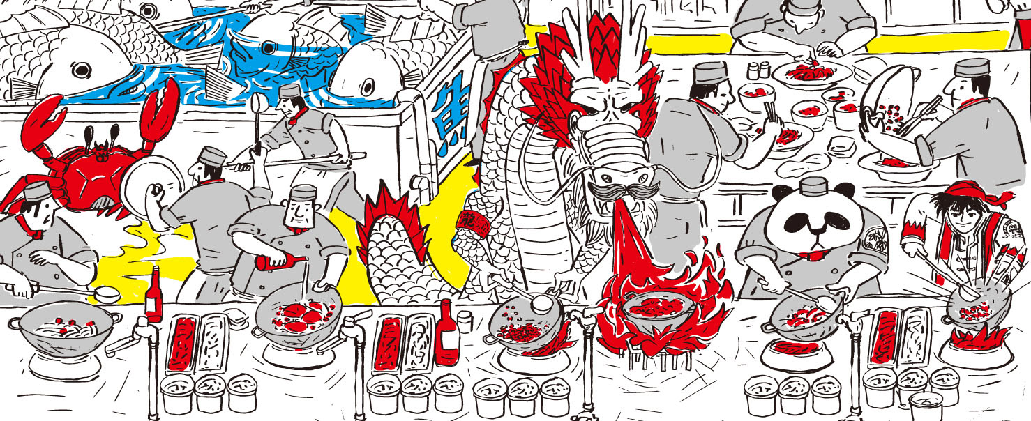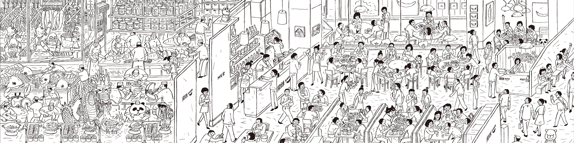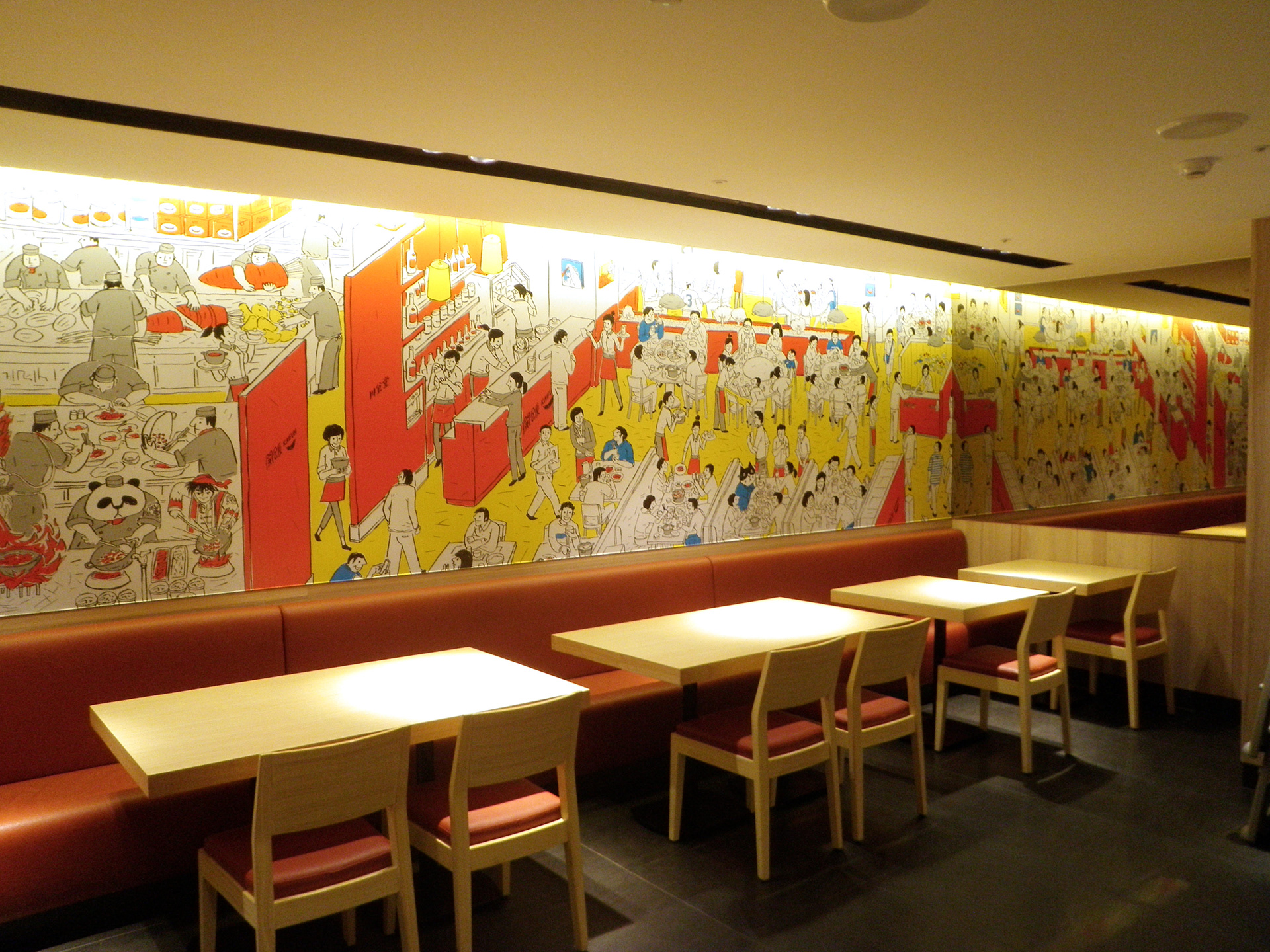 開飯 川食堂 餐廳牆面插畫。