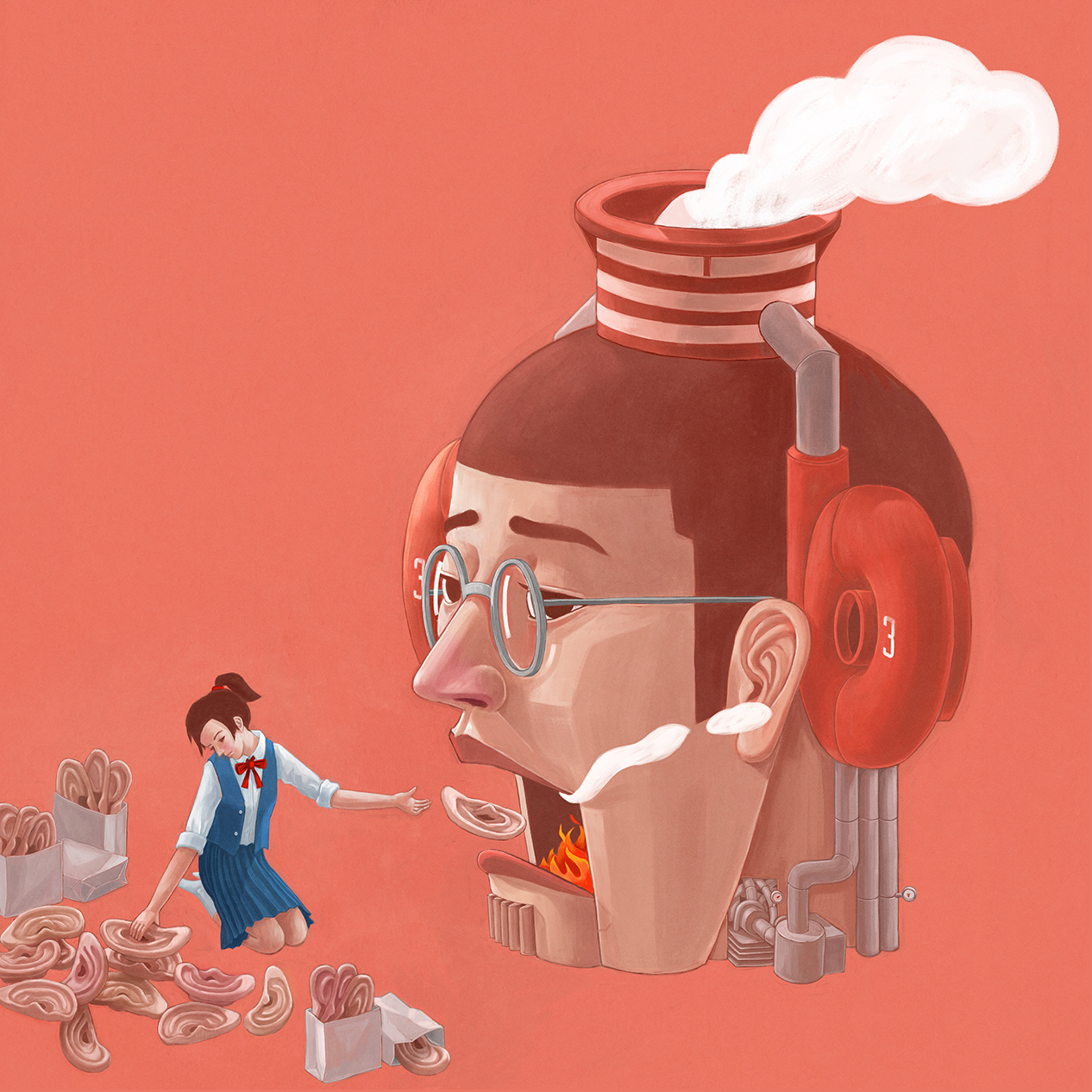 我要把那些聽信謠言的耳朵 都一一拆卸下來 投入高溫的口裡作為人際關係的燃料 只可惜聖嬰下的暖冬 悶熱令人不耐 抱怨產生的廢氣總是難以聞問( 當然少不了PM2.5) 希望世間的謊言都燒成爐渣廢灰 封罐埋進你我耳上三吋的地方 等待遺忘的半衰期到來